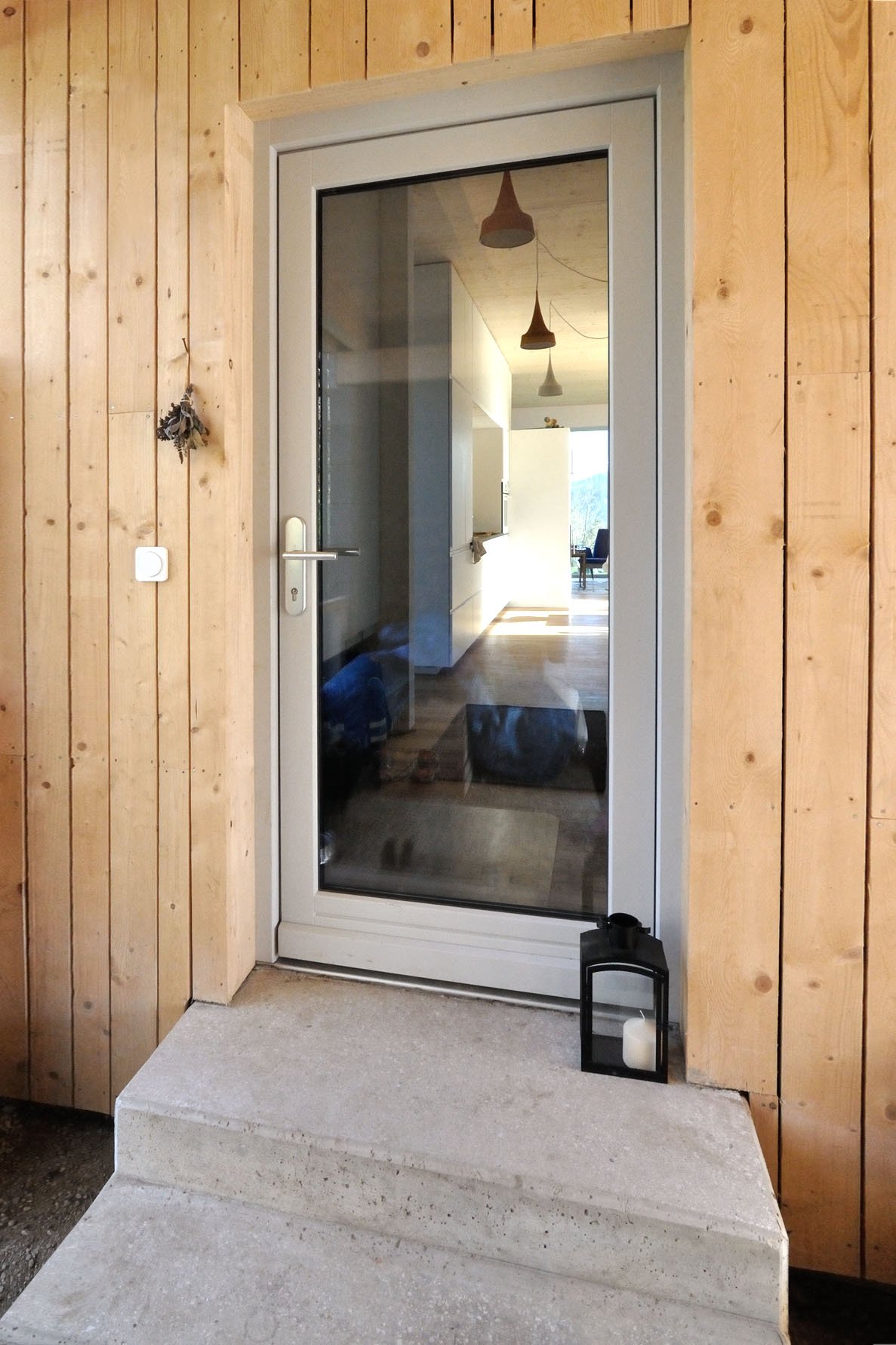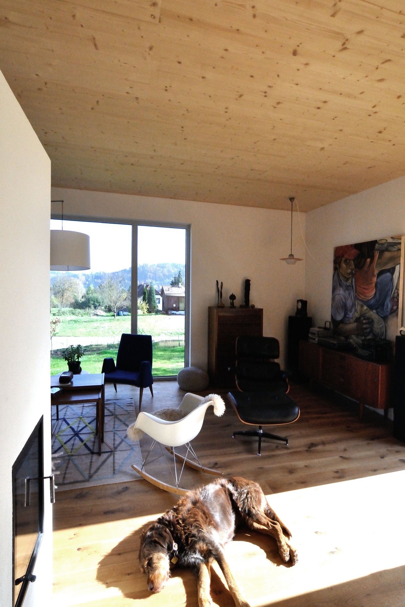 Ziel des Projektes war es, ein helles, freundliches und ökologisches Haus zu planen, das mit einem knappen Budget umgesetzt werden kann. Die Wahl fiel dabei auf eine zum Teil sichtbare Holzriegelkonstruktion, auf einen großzügigen Schuppen anstatt eines Kellers und einen klug ausgedachten Grundofen, der eine aufwendige Heizungsinstallation ersetzt.