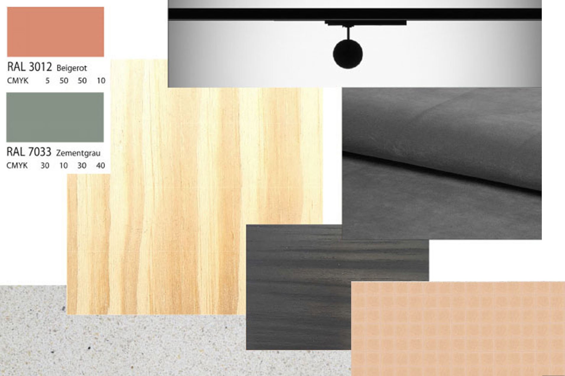 Im großen Arbeitsraum schaffen die offenen natürlichen Materialien eine sehr angenehme Akustik und Arbeitsatmosphäre. Die Nebenräume sind in warmen Lehmfarben gehalten und sind dadurch auf ihre Weise freundlich und einladend.